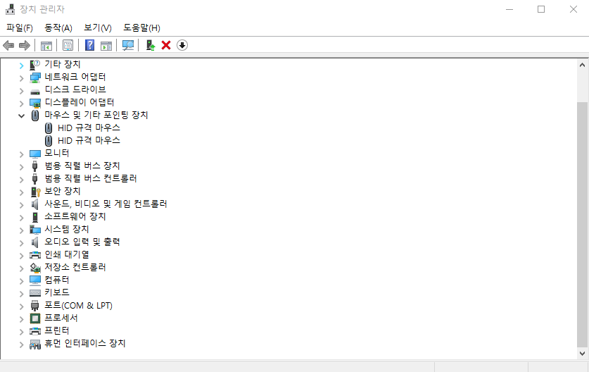 <장치 관리자에서 HID 규격 마우스 사용안함 설정하는 법>